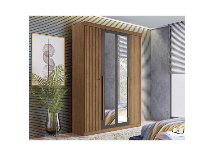 Guarda Roupa 4 Portas E 2 Gavetas C/ Espelho Buriti Jatoba/Grafitte - Santos Andirá
