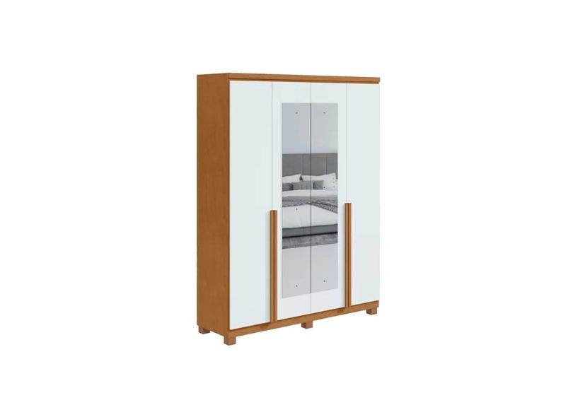 Guarda Roupa 4 Portas E 2 Gavetas C Espelho E Pes Alonzo Amendoa Branco Lopas