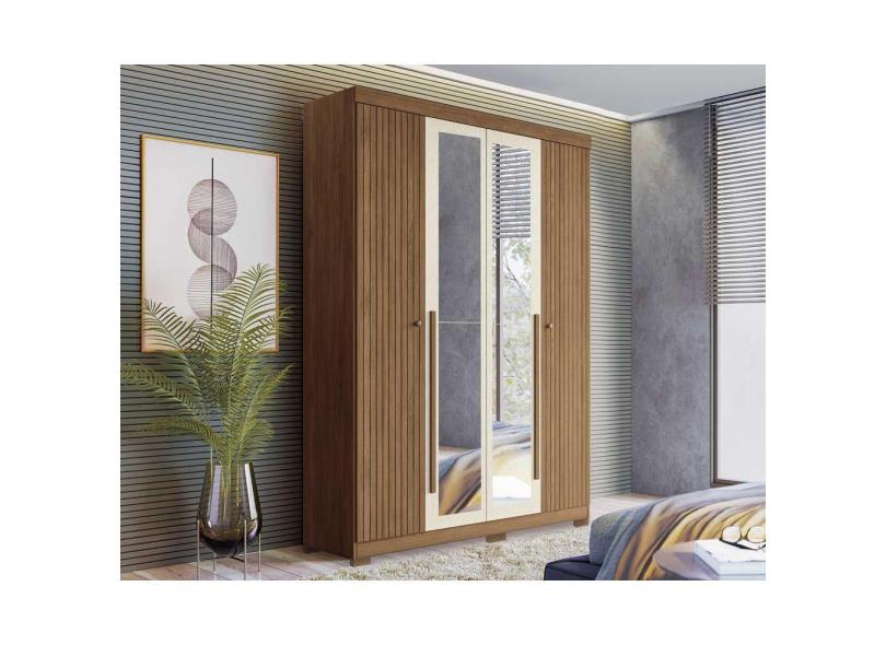 Guarda Roupa 4 Portas e 2 Gavetas c/ Espelho e Pés Buriti jatoba/Areia - Santos Andirá
