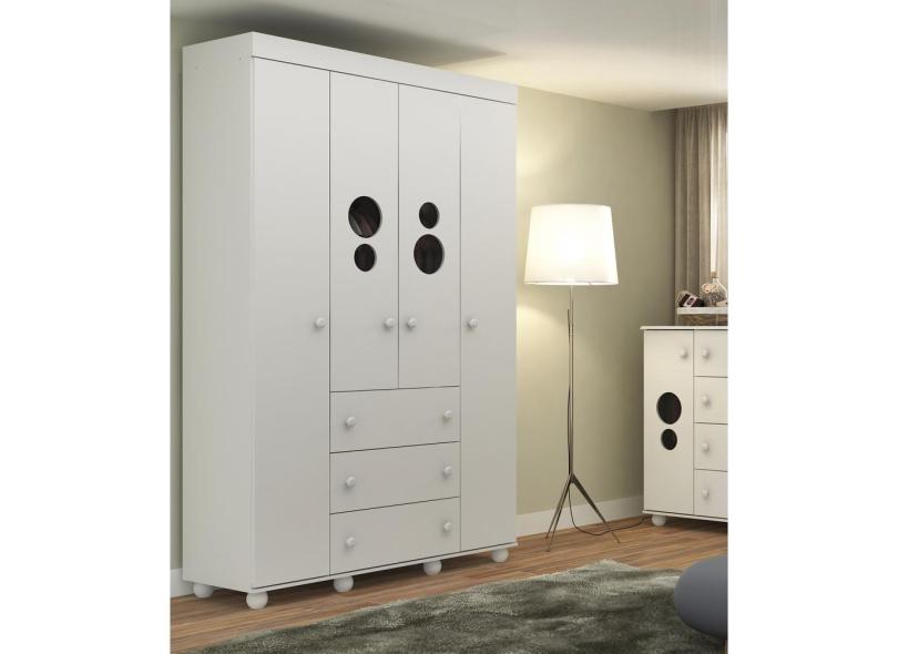 O menor preço encontrado no Brasil para Guarda Roupa 4 Portas e 3 Gavetas Pimpolho Multimóveis Branco atualmente é R$ 849,99.