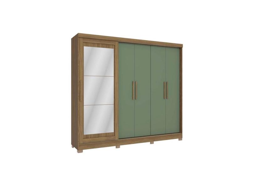 Guarda Roupa 5 Portas (1 c/ Espelho) e 4 Gavetas c/ Pés CB01N564 Nogueira/Verde - Kappesberg