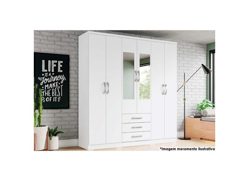 Guarda Roupa 6 Portas (2 c/ Espelho) e 3 Gavetas Caju DA136 Branco - Henn