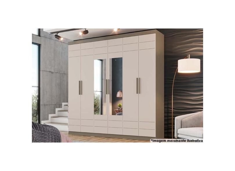 Guarda Roupa 6 Portas (2 c/ Espelho) e 3 Gavetas Flora Duna/Cristal - Henn
