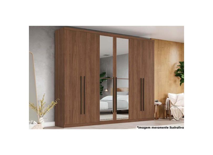 Guarda Roupa 6 Portas (2 c/ Espelho) e 3 Gavetas Jade Castanho - Henn