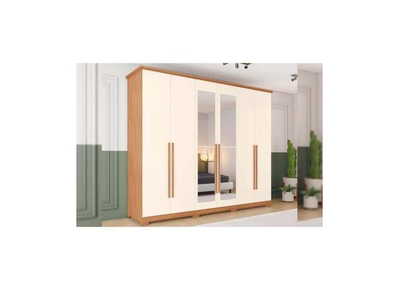 Guarda Roupa 6 Portas (2 c/ Espelho) e 6 Gavetas c/ Pés Leblon Nature/