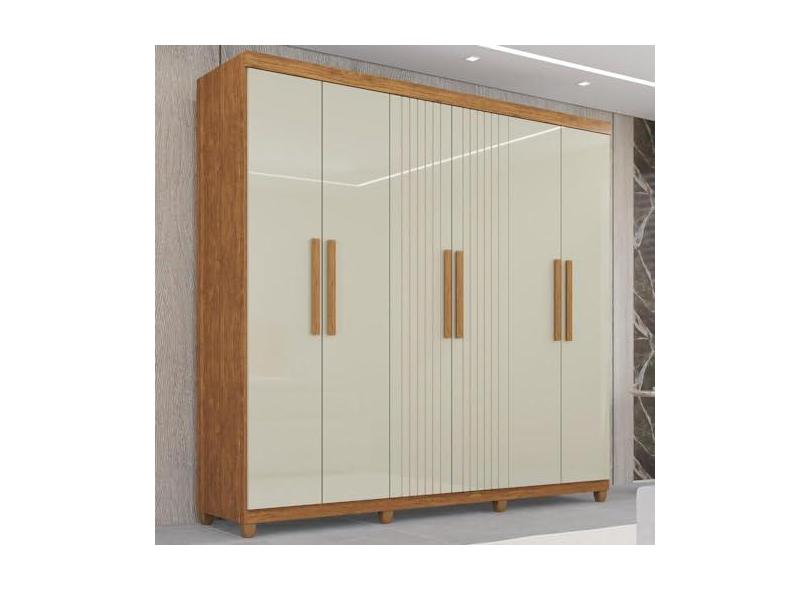 Guarda-roupa 6 Portas 2 Gavetas Portugal Frison Cinamomo/off-white