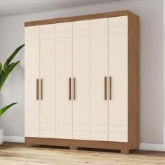 Guarda-roupa 6 Portas 3 Gavetas com Espelho B369 Marrom/Off White