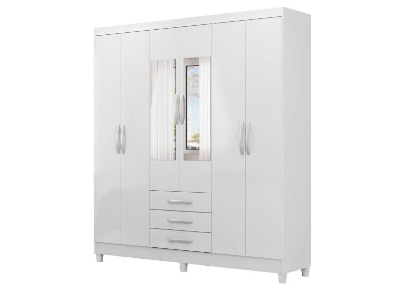 Guarda Roupa 6 Portas 3 gavetas Espelho 180cm Branco Megasul