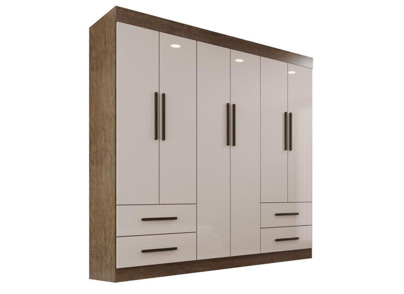 Guarda Roupa 6 Portas 4 Gavetas Mdp Ipê E Off