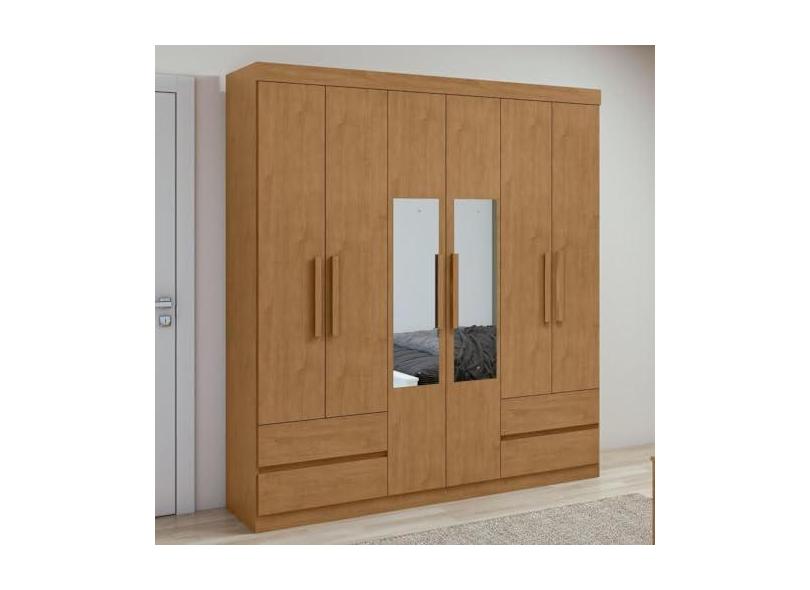 O menor preço encontrado no Brasil para Guarda-roupa 6 Portas 4 Gavetas Zeus com espelho Amêndoa Clean atualmente é R$ 938,64.