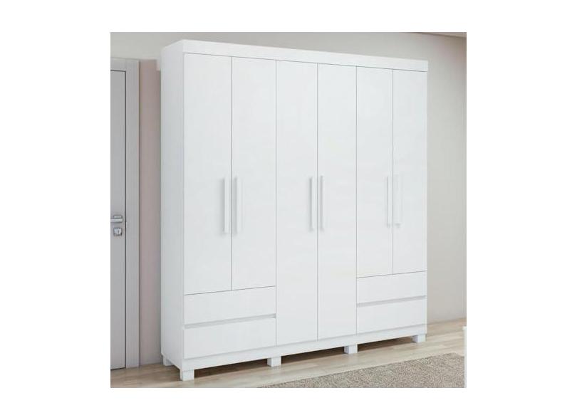 Guarda-roupa 6 Portas 4 Gavetas Zeus com Pés Branco