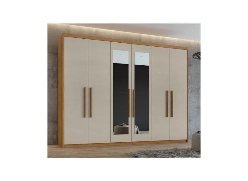 Guarda-roupa 6 Portas 5 Gavetas Áries com espelho Amêndoa Clean/off White