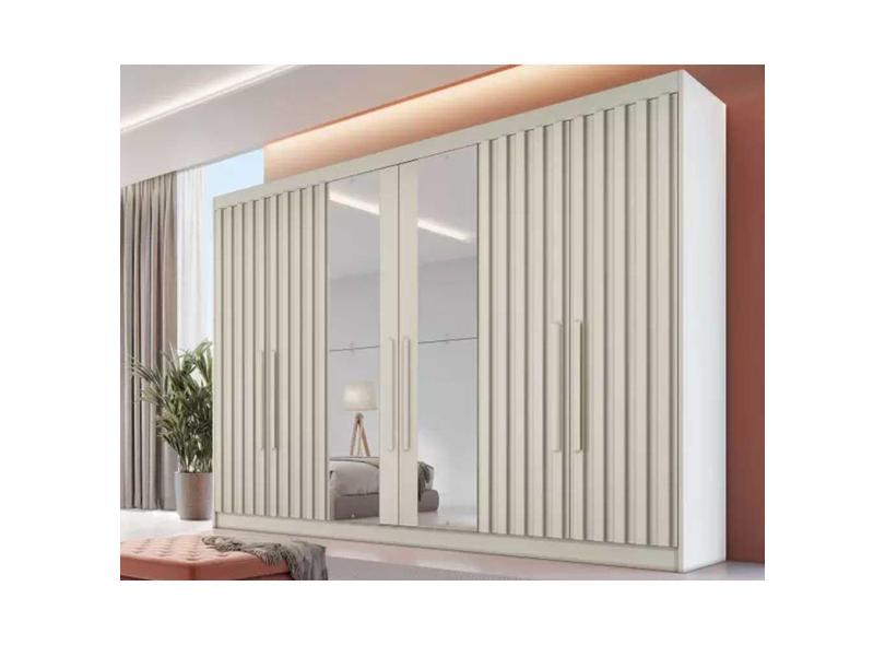 Guarda Roupa 6 Portas C/ 4 Ripadas E 6 Gavetas C/2 Espelhos Potente Off White - Europa