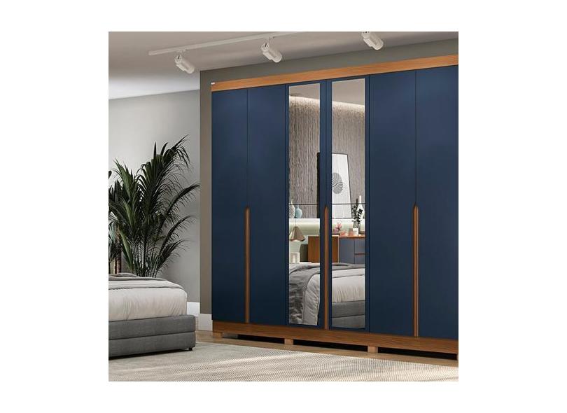 Guarda-Roupa 6 Portas Com Espelhos E Pés Canela/Azul - Kappesberg