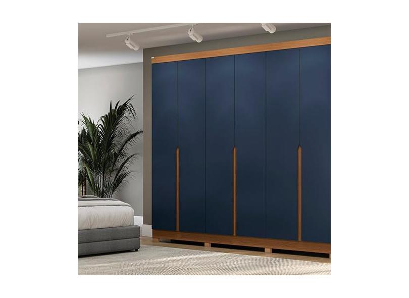 Guarda-Roupa 6 Portas Com Pés Canela/Azul - Kappesberg