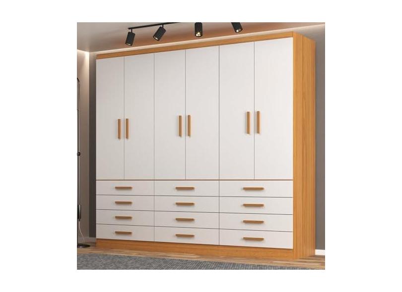 Guarda-Roupa 6 Portas e 12 Gavetas New Mônaco Branco/Cinnamomo