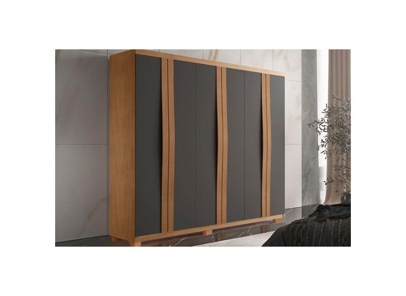 Guarda Roupa 6 Portas e 2 Gavetas c/ Pés Grécia Naturalle Grafite - Rufato