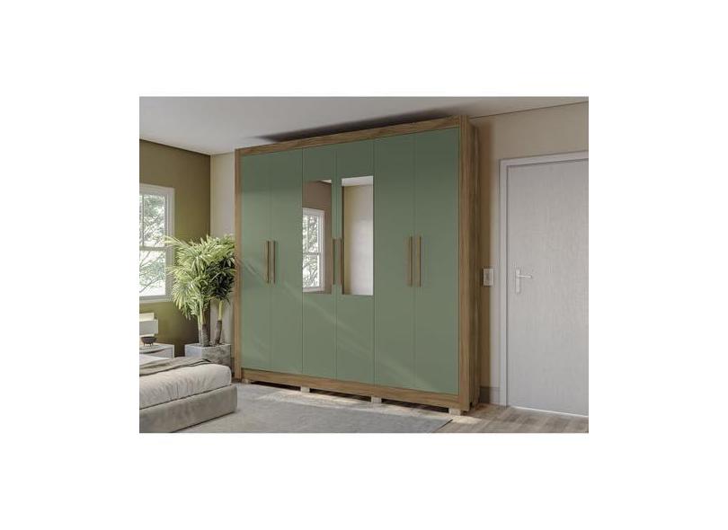 O menor preço encontrado no Brasil para Guarda-roupa 6 Portas e 2 Gavetas com Pés e Espelho Nogueira/verde Oliva atualmente é R$ 1.249,98.