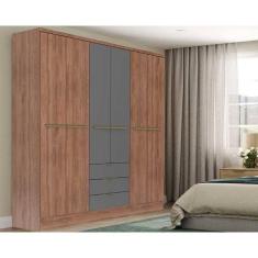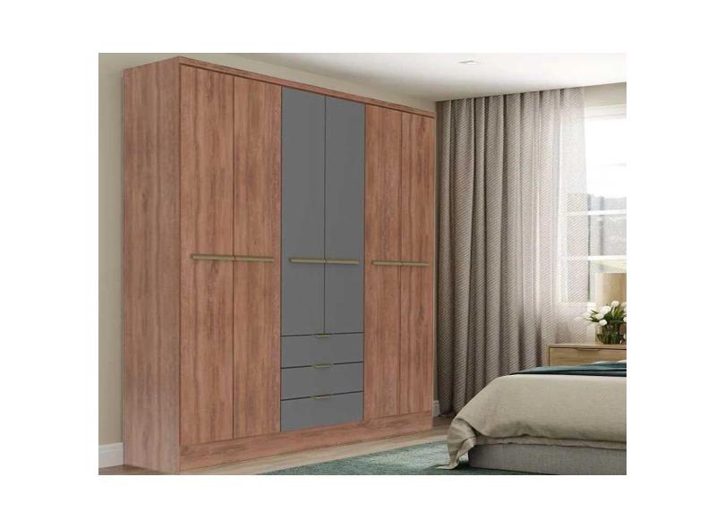 Guarda Roupa 6 Portas E 3 Gavetas Troy 1151 Freijo C/ Cinza Titanio - Carraro