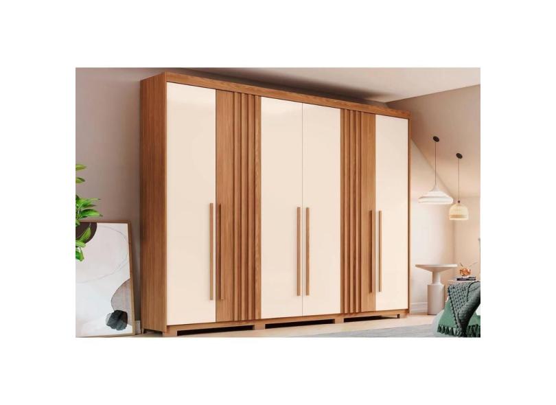 Guarda Roupa 6 Portas e 4 Gavetas c/ Pés Norton Nature/Off White - Henn