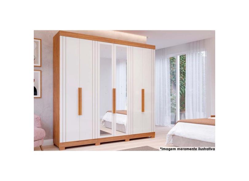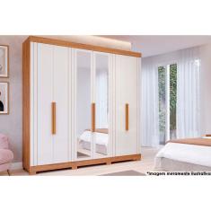 Guarda Roupa 6 Portas e 6 Gavetas c/ Espelho e Pés Cecilia Cinamomo/Off White - Panan