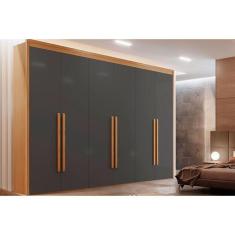 Guarda Roupa 6 Portas e 6 Gavetas Creta Naturale/Grafite - Rufato