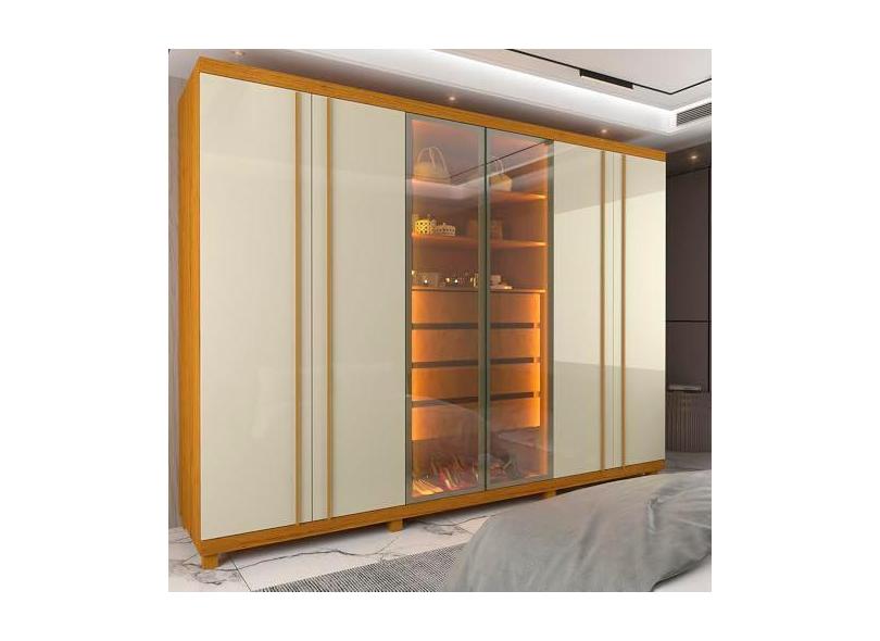 Guarda Roupa 6 Portas LED Absolut Reflecta Naturale Off White - Gelius