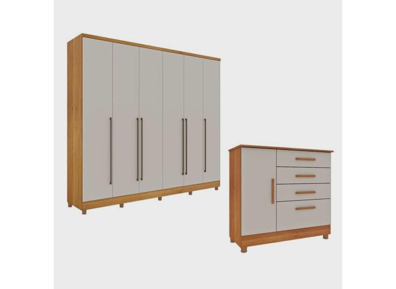 Guarda-Roupa 6 Portas Portugal E Comoda 4 Gavetas Chicago Com Pés Espresso Móveis Cinamomo/Off