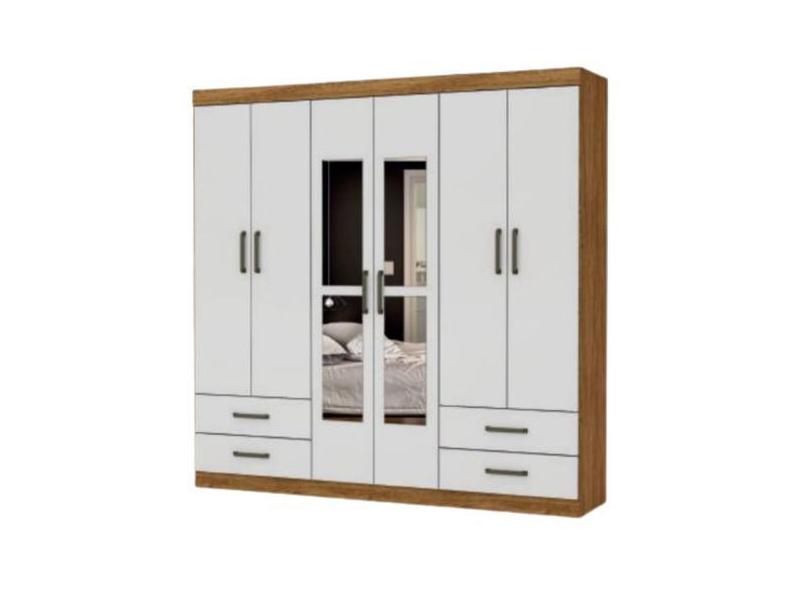 Guarda Roupa 6 Pts Com Espelho Hercules Gold Carioca Freijo Com Branco