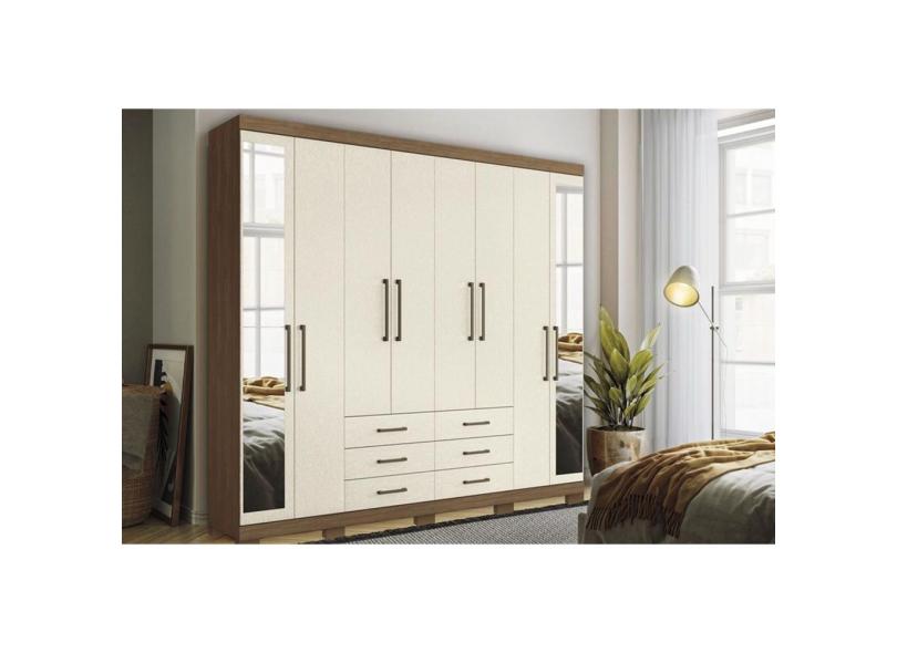 Guarda Roupa 8 Portas (2 c/ Espelho) e 6 Gavetas c/ Pés Master 8.6 Jatobá/Areia - Santos Andirá