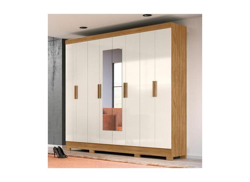Guarda Roupa 8 Portas Com Espelho Superagui Freijó Off White