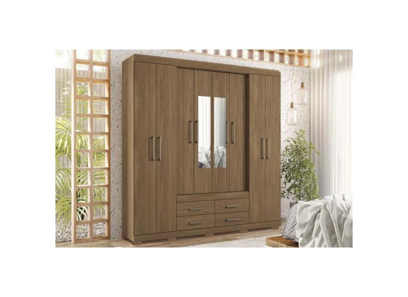 Guarda Roupa 8 Portas E 4 Gavetas C/ Espelho E Pés Nápoles Jatoba - Santos Andirá