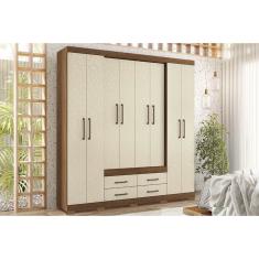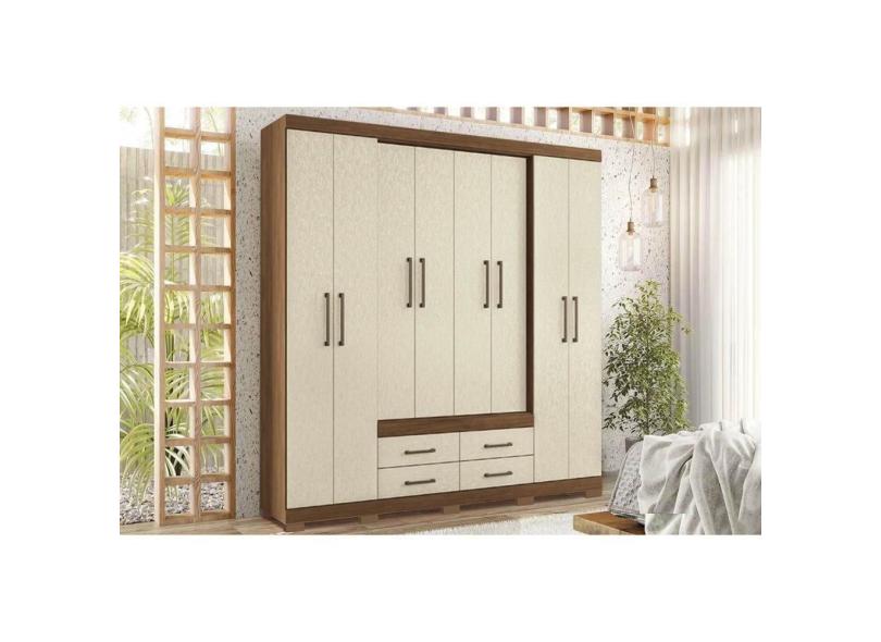 Guarda Roupa 8 Portas e 4 Gavetas c/ Pés Nápoles Jatobá/Areia - Santos Andirá