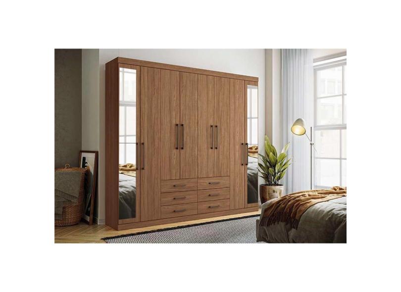 Guarda Roupa 8 Portas E 6 Gavetas C/ Espelho Master 8.6 Jatoba - Santos Andirá