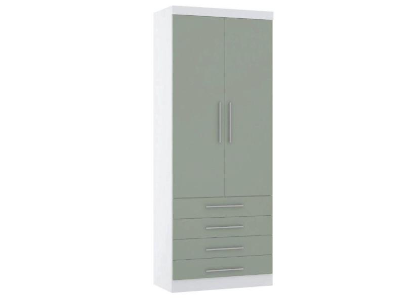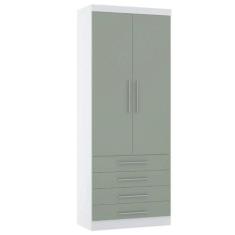 Guarda Roupa 90cm 2 Pts E 4 Gavetas Alpes Luciane Móveis Branco Com Verde