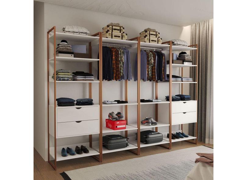 Guarda Roupa Aberto Industrial Casal Modulado Completo Branco Cabideiro com Gavetas Base Cobre