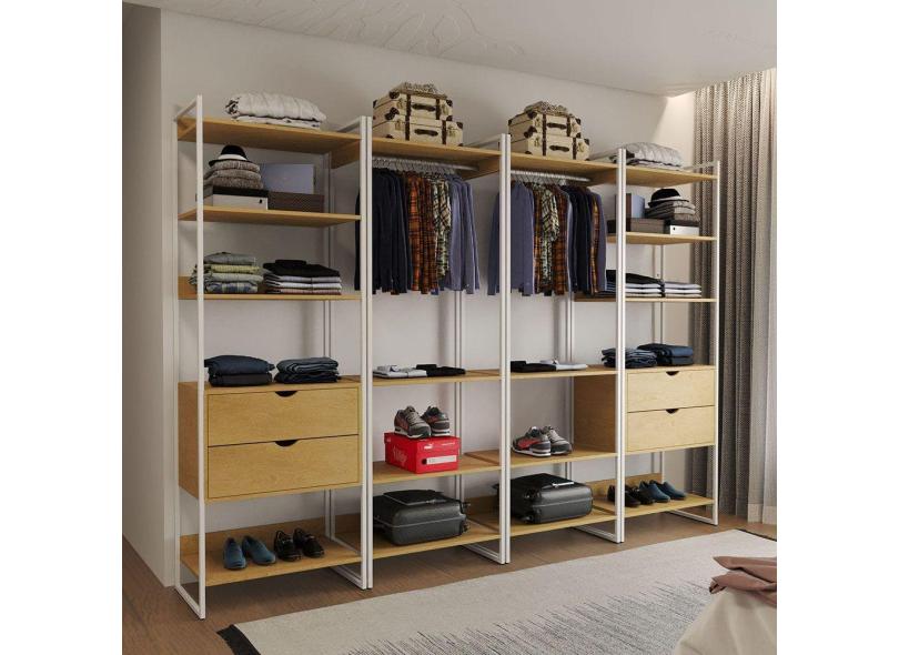 Guarda Roupa Aberto Industrial Casal Modulado Completo Canela Cabideiro com Gavetas Ferro Branco