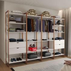 Guarda Roupa Aberto Industrial Casal Modulado Completo Preto Cabideiro com Gavetas Ferro Branco