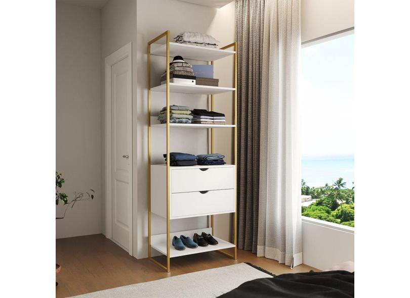 Guarda Roupa Aberto Industrial Solteiro 1 Módulo com Gaveta Branco Base Dourada