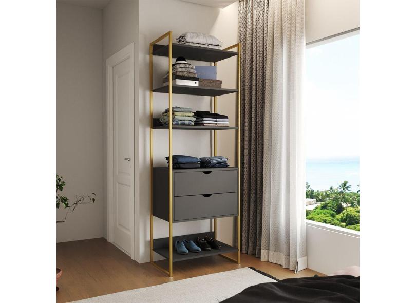 O menor preço encontrado no Brasil para Guarda Roupa Aberto Industrial Solteiro 1 Módulo com Gaveta Preto Base Dourada atualmente é R$ 784,50.