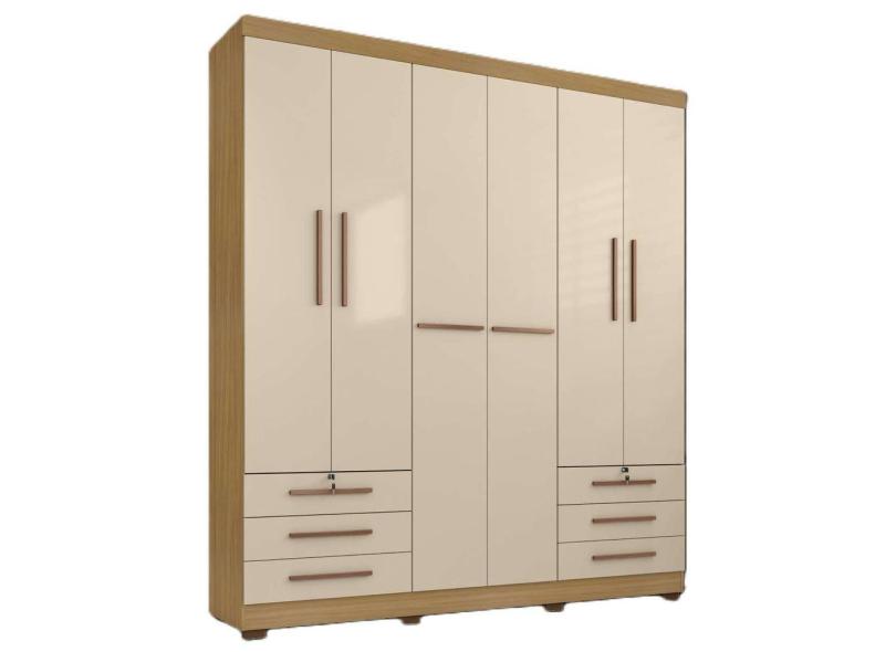 Guarda Roupa Amsterdã 6 Portas com 6 Gavetas sem Espelho Cor Carvalho e Off White - Incorplac