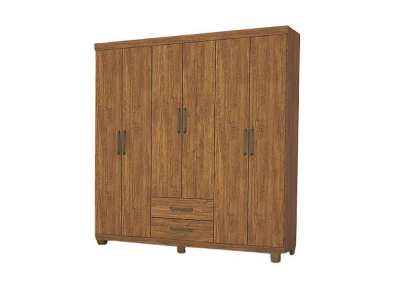 Guarda Roupa Aries Casal 6 Portas 2 Gavetas Carioca Cor Freijó - Estre