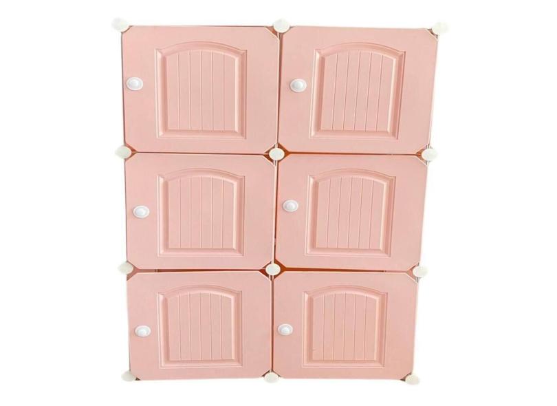 Guarda Roupa Armario Cabideiro 6 Portas Arara Organizador Portatil Modular Rosa Luxo