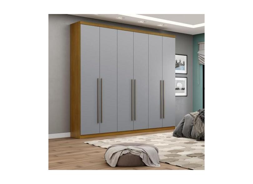 Guarda Roupa Armário Roupeiro Multiuso 6 Portas 3 Gavetas 6 Prateleiras Organizador Cinza Madeira