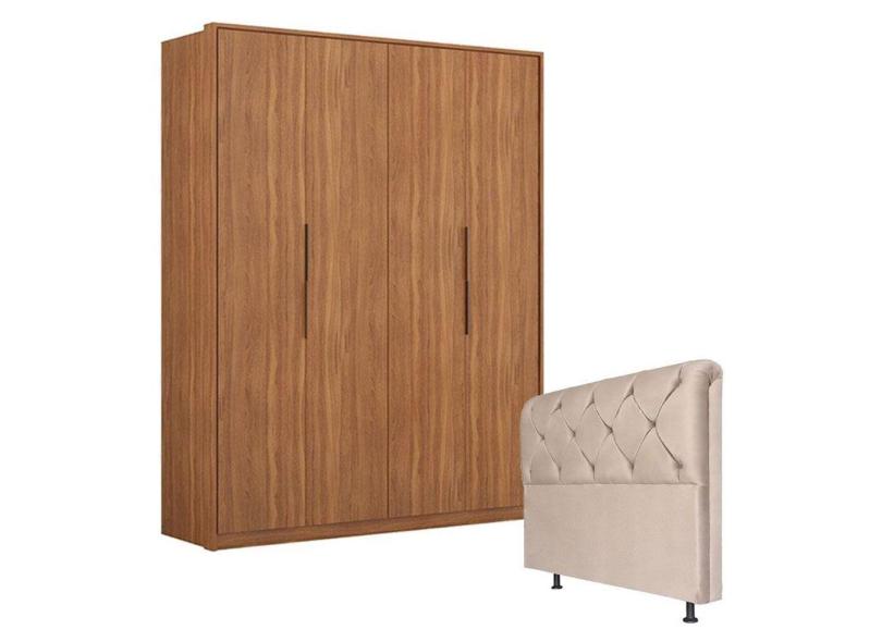 Guarda Roupa Attore 4 Portas Amêndola com Cabeceira Daiana 160 cm Marfim - Demartêz