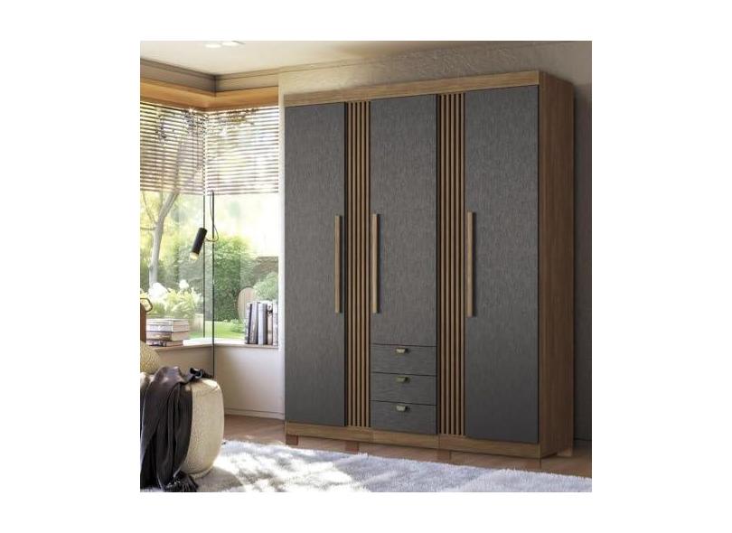 Guarda-roupa Aurora 03 Portas com Pés Jatobá/grafite