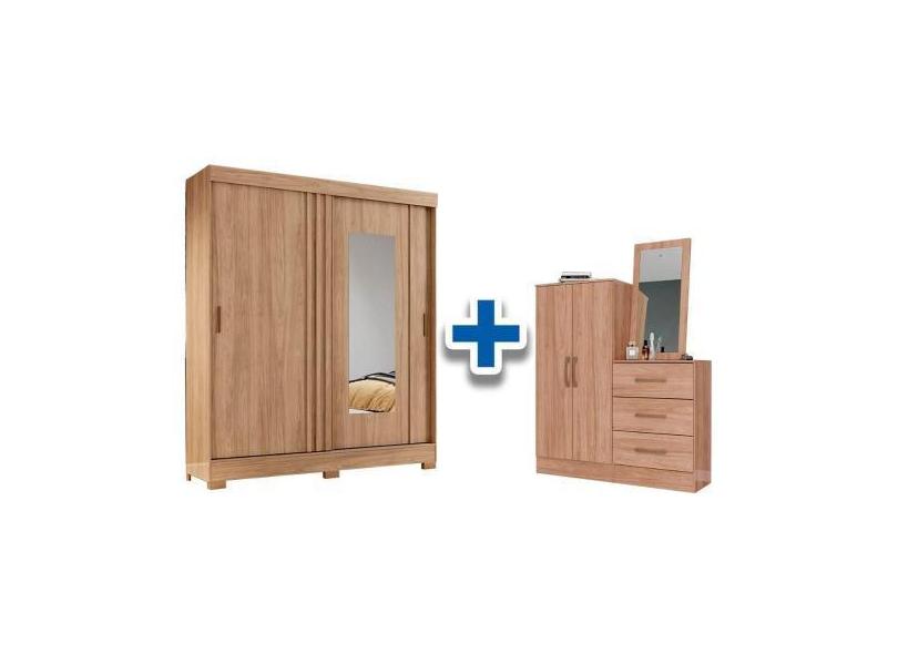 Guarda Roupa B353 2 Portas De Correr C/ Espelho E Pés + Cômoda Multius