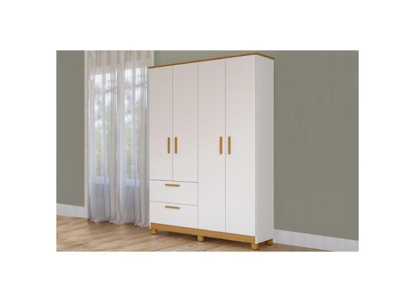 Guarda Roupa Bebê 4 Portas E 2 Gavetas Jujuba Nature/branco - Permóbili Baby