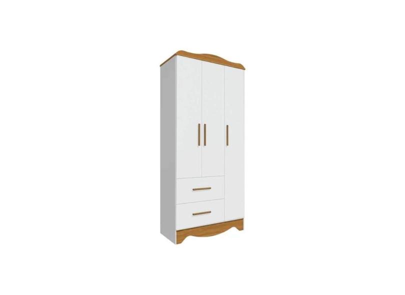 Guarda Roupa Bebê Clara C- 3 Portas Lisa E 2 Gavetas Branco Brilho-amendoa - Peroba
