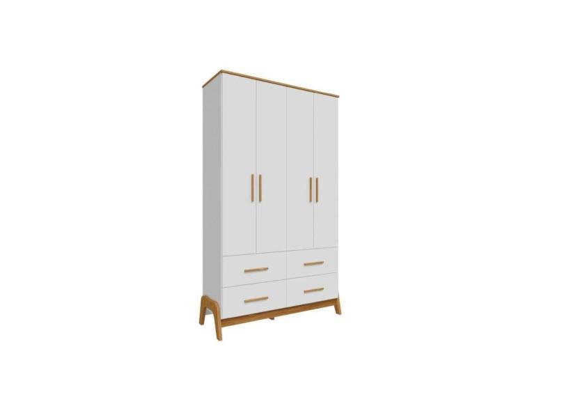 Guarda Roupa Bebê Guti c/ 4 Portas e 4 Gavetas Branco/Amendoa - Peroba